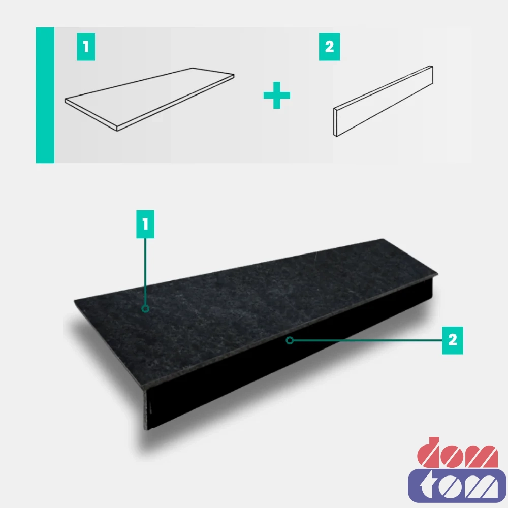 Zestaw Stopnica - Stopień + Podstopień Bazaltowy G690 Bazalt Black 150x33x2 / 150x15x2