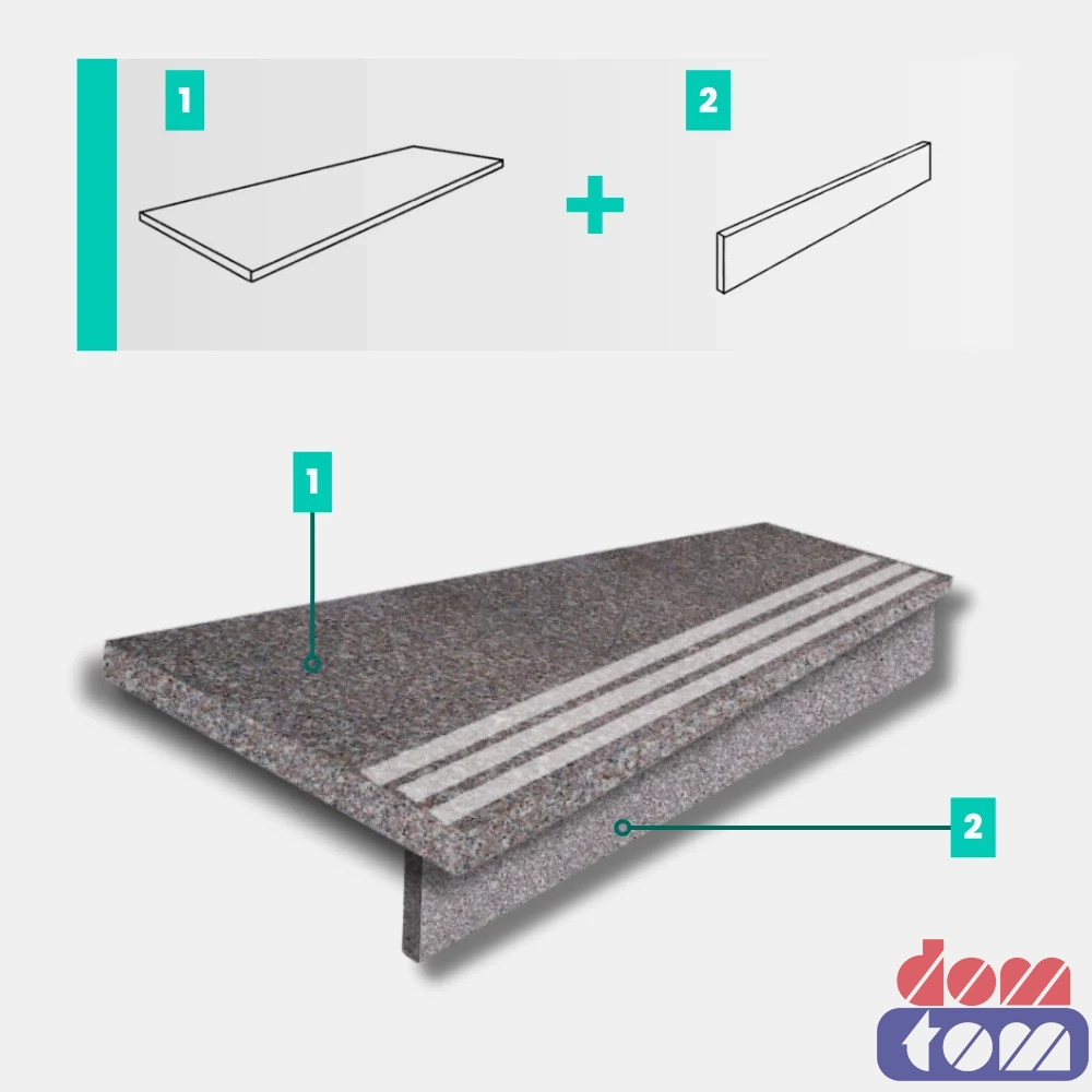 Zestaw Stopnica - Stopień + Podstopień Granitowy G664 100x35x2 / 100x15x2 Polerowany z Antypoślizgiem