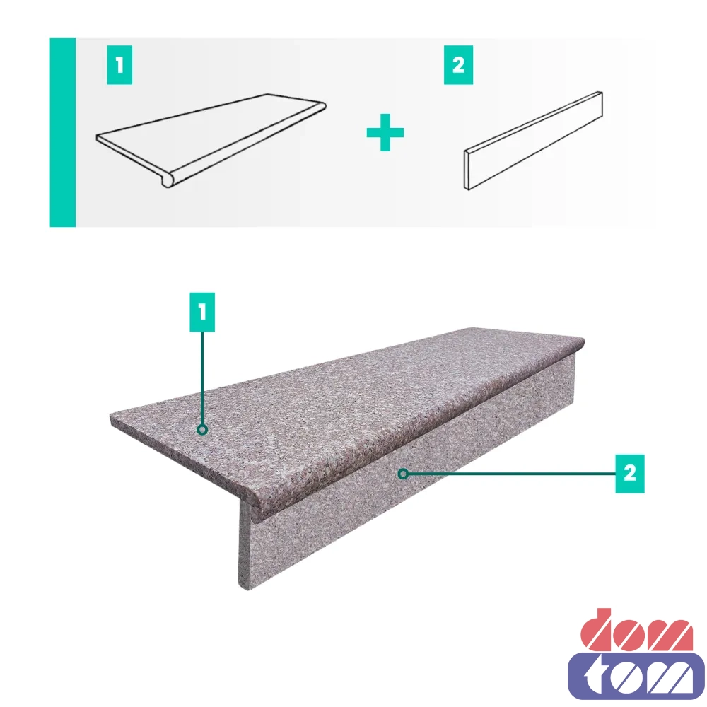 Zestaw Stopnica - Stopień + podstopień granitowy G664 Bullnose 135x35x2+2 Bullnose